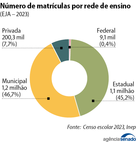 Para quem não concluiu a educação básica, o governo trabalha com projeção de aumento de 22% nas matrículas por ano na EJA.