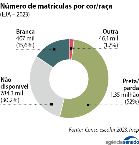 Por isso, a ação não deve ser restrita à oferta, mas deve atingir também a demanda. A evasão, por exemplo, é alta. Entre 2018 e 2023, houve perda de 27% de matrículas da EJA.