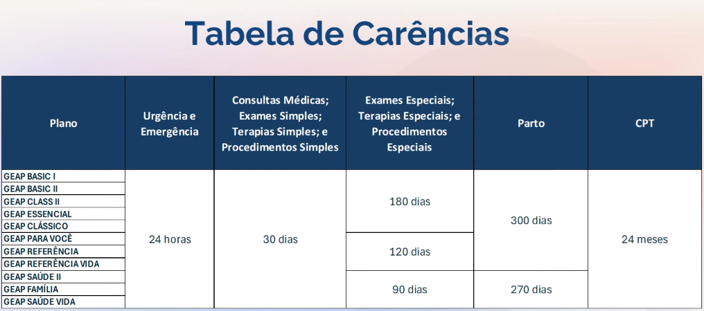 Existe, ainda, a possibilidade de portabilidade de carência, ou seja, a transferência do período já cumprido em outro plano para a Geap.