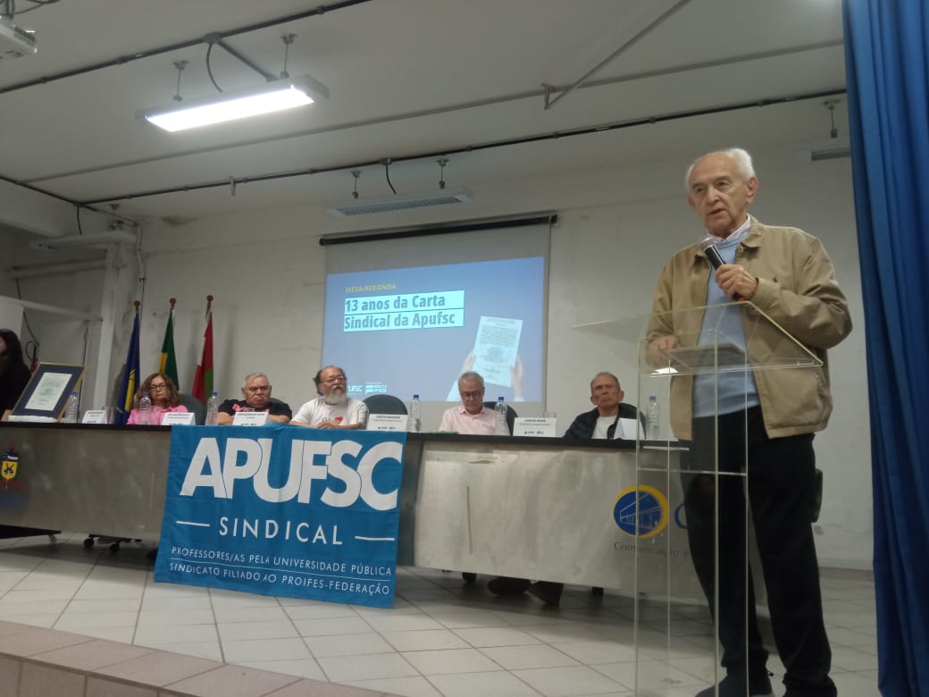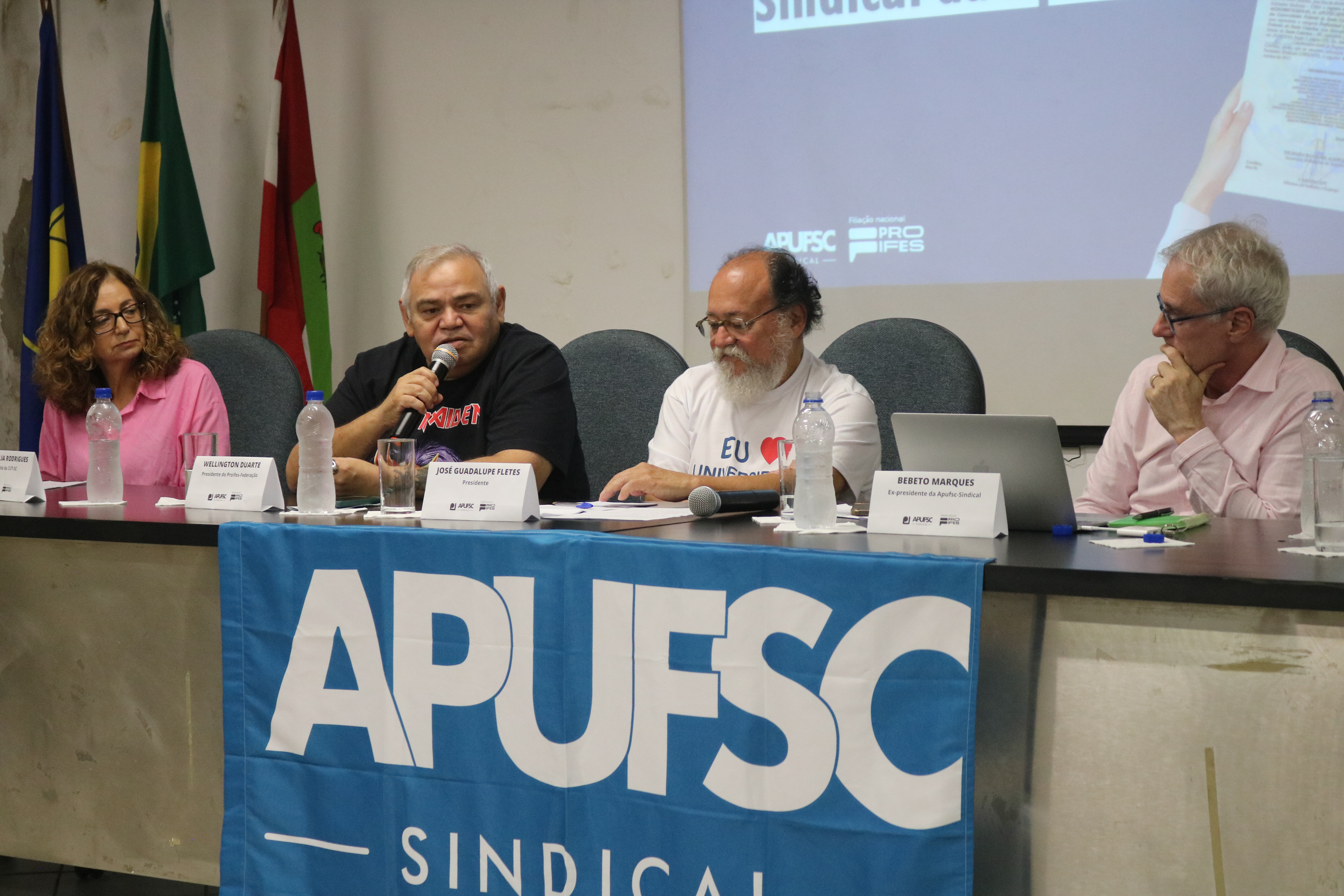 A mesa foi composta pelos ex-presidentes da Apufsc Carlos Mussi (2010-2012), Wilson Erbs (2014-2018), Carlos Alberto Marques (2018-2022), o presidente do Proifes-Federação, Wellington Duarte, e a presidenta da Central Única dos Trabalhadores em Santa Catarina (CUT/SC), Anna Julia Rodrigues.