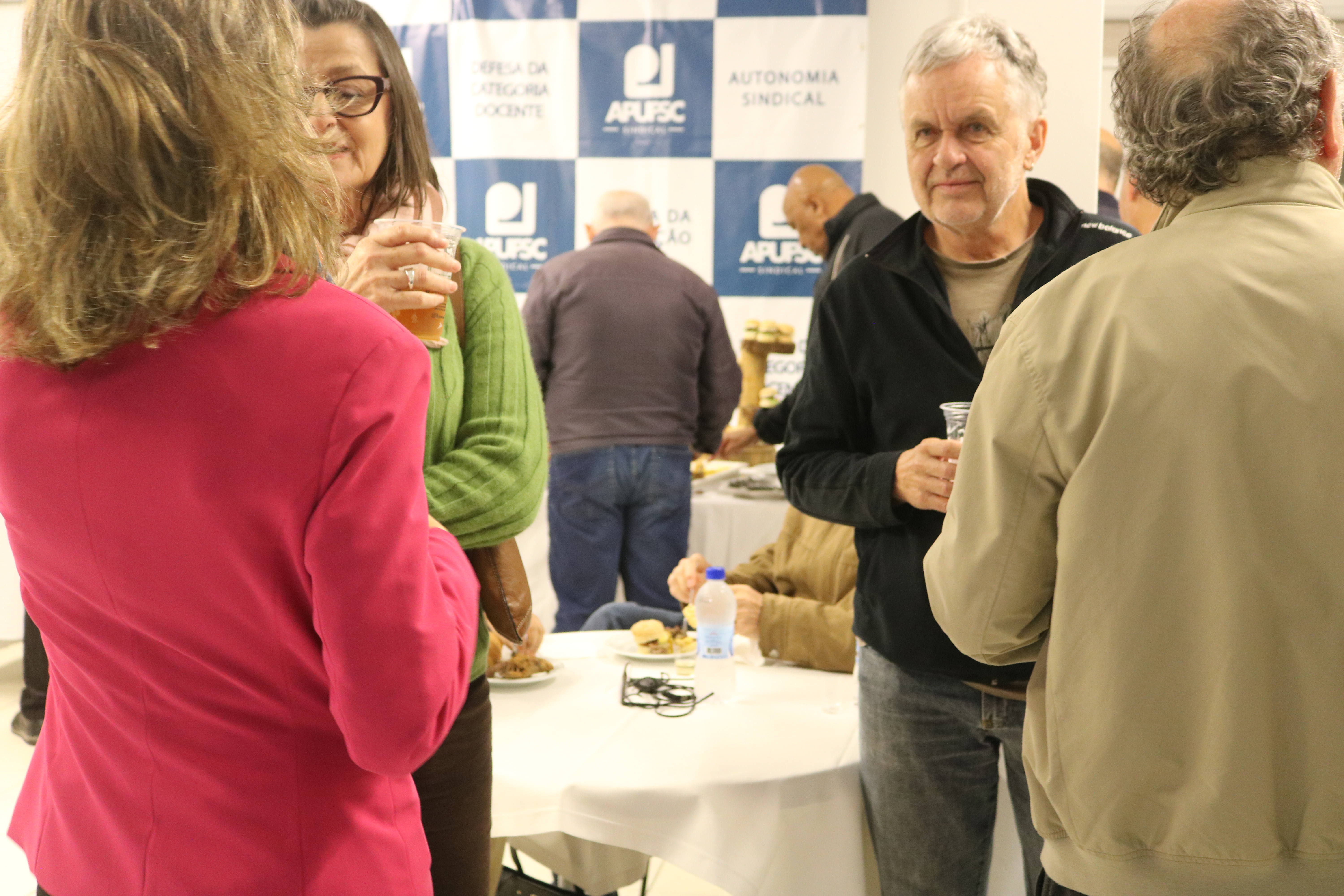 Durante o evento, ocorreu ainda o lançamento de quatro livros. Entre eles, esteve o “Acolhe UFSC: Atenção psicossocial para a comunidade universitária em tempos de covid-19″, organizado por Ana Lúcia Mandelli de Marsillac, Cor Mariae Lima, Daniela Ribeiro Schneider, Flávia Gizzi, Francis Solange Vieira Tourinho, Jeferson Rodrigues e Lucas Emmanoel Cardoso de Oliveira, produzido com apoio da Apufsc-Sindical. A obra relata o trabalho do AcolheUFSC, projeto de extensão que contou com mais de 200 voluntários durante o período da pandemia. Os organizadores agradeceram o apoio do sindicato e reforçaram a importância da divulgação da pesquisa científica e dos projetos de extensão da universidade, bem como o papel da instituição em prol da saúde mental da comunidade. O livro está disponível como e-book de forma gratuita.