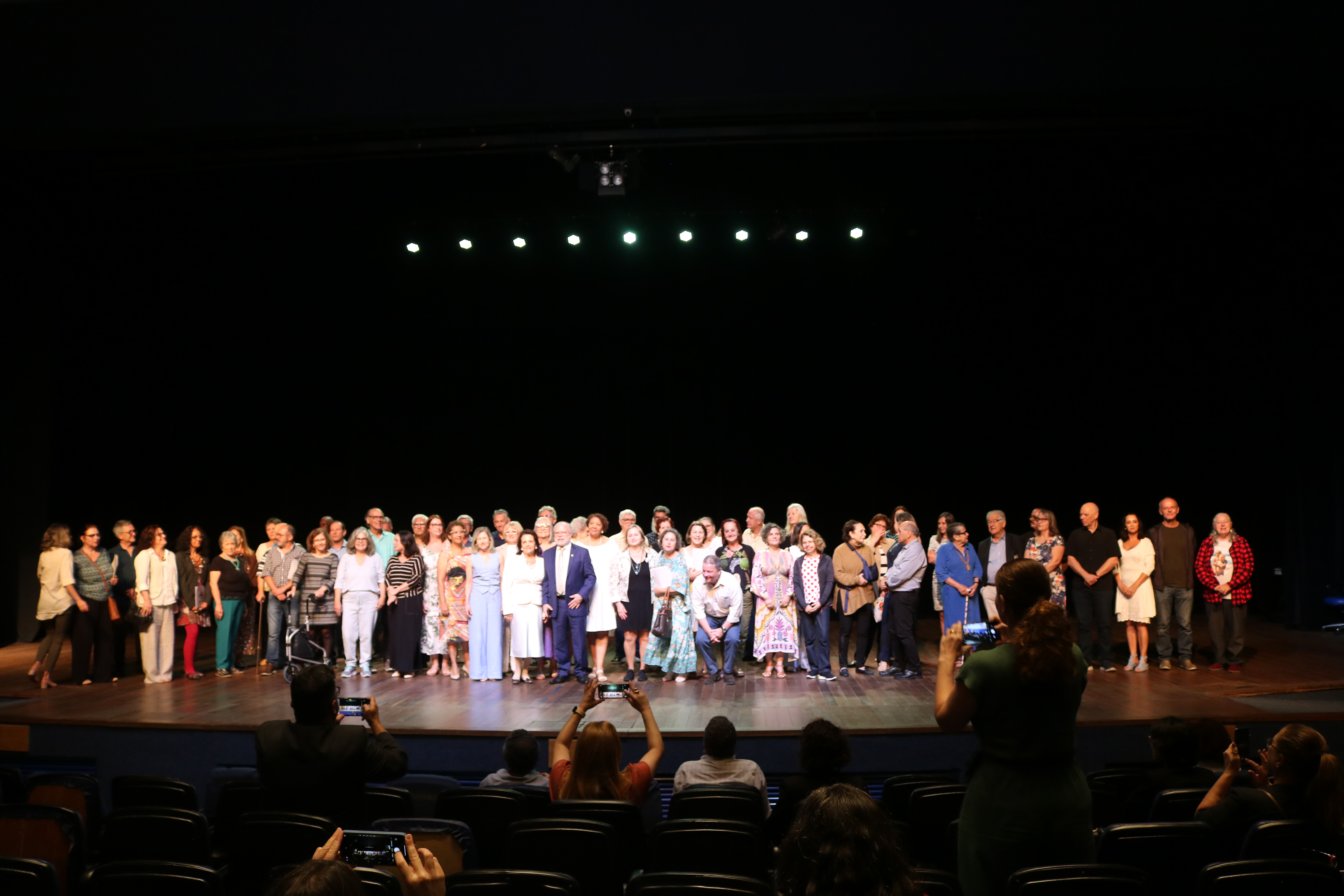 Após as performances, todos os servidores homenageados na cerimônia foram convidados para subir ao palco, receber os aplausos dos convidados e tirar fotos. Eles também foram cumprimentados pelo reitor e a vice-reitora da universidade, que foram os últimos a fazer seus discursos.