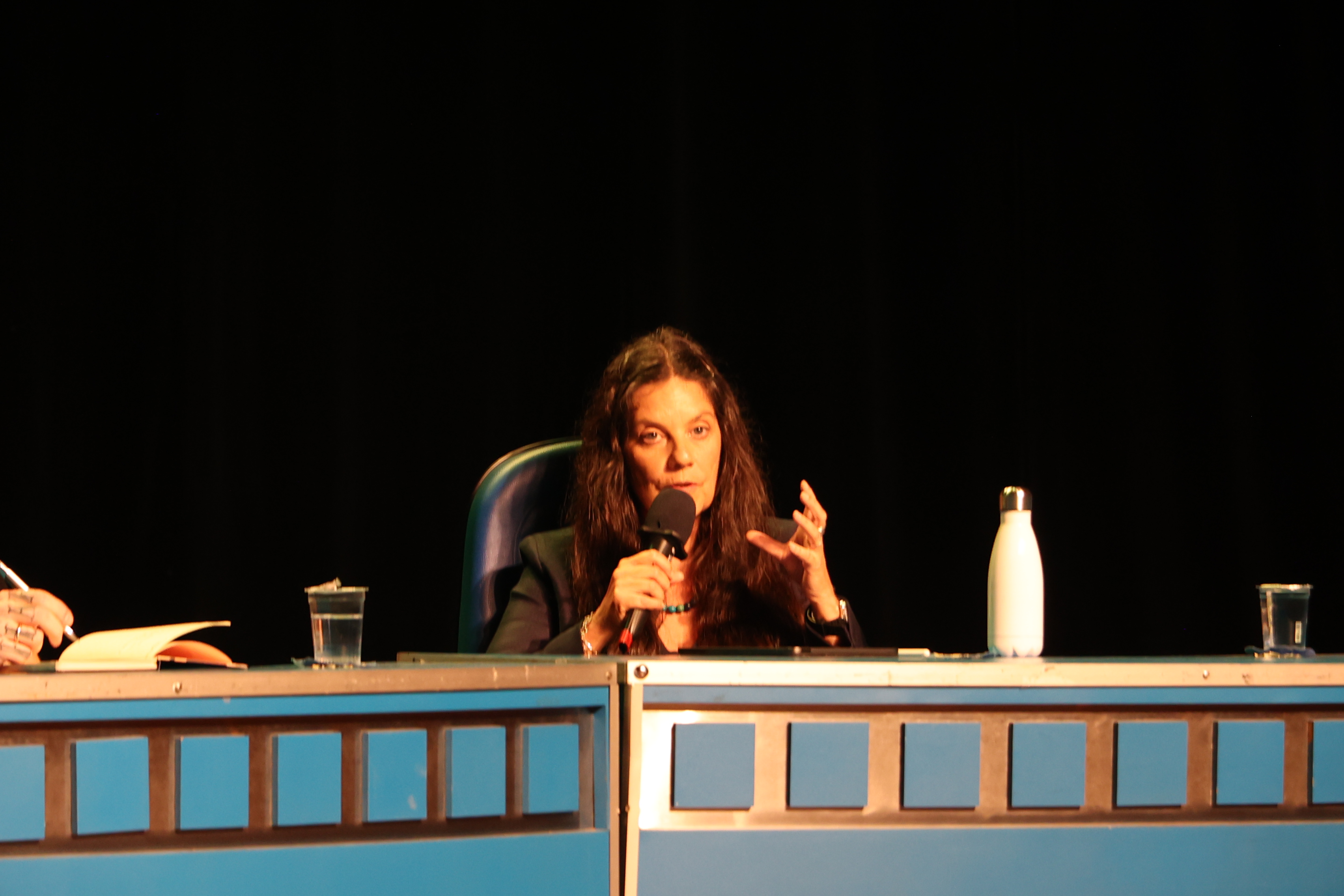 Durante o debate, uma estudante de ensino médio que já descobriu asteroides subiu ao palco. Rosa Maria Miranda, do Colégio de Aplicação da UFSC, saudou os cientistas da mesa e falou sobre seu papel de divulgadora da ciência.