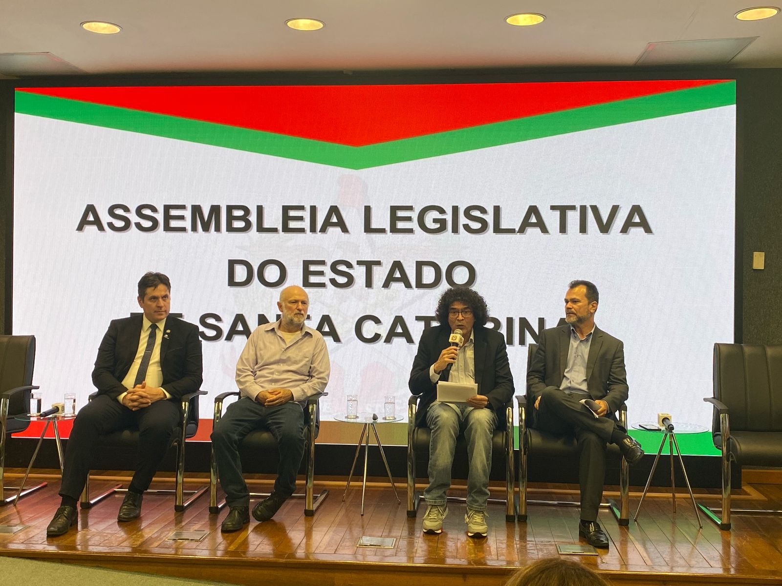 Fábio Bispo, presidente do Sindicato dos Jornalistas de Santa Catarina (SJSC), Fábio Wagner Pinto, presidente da Fapesc, Déborah Almada, presidente da Associação Catarinense de Imprensa (ACI) e o professor Sérgio Henrique Pezzin, pró-reitor de Pesquisa e Pós-Graduação da Universidade do Estado de Santa Catarina (Udesc), também contribuíram com falas para o debate.