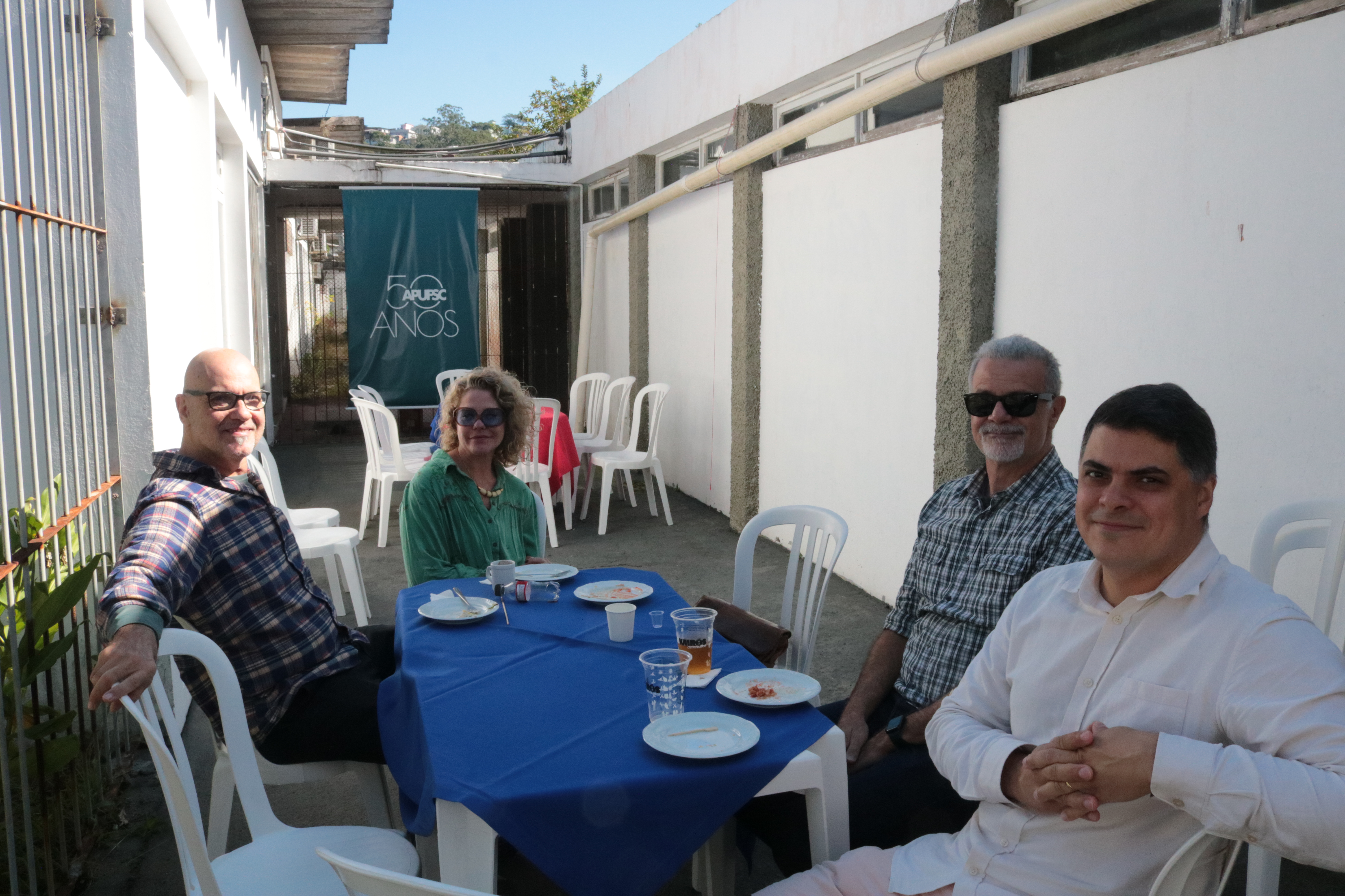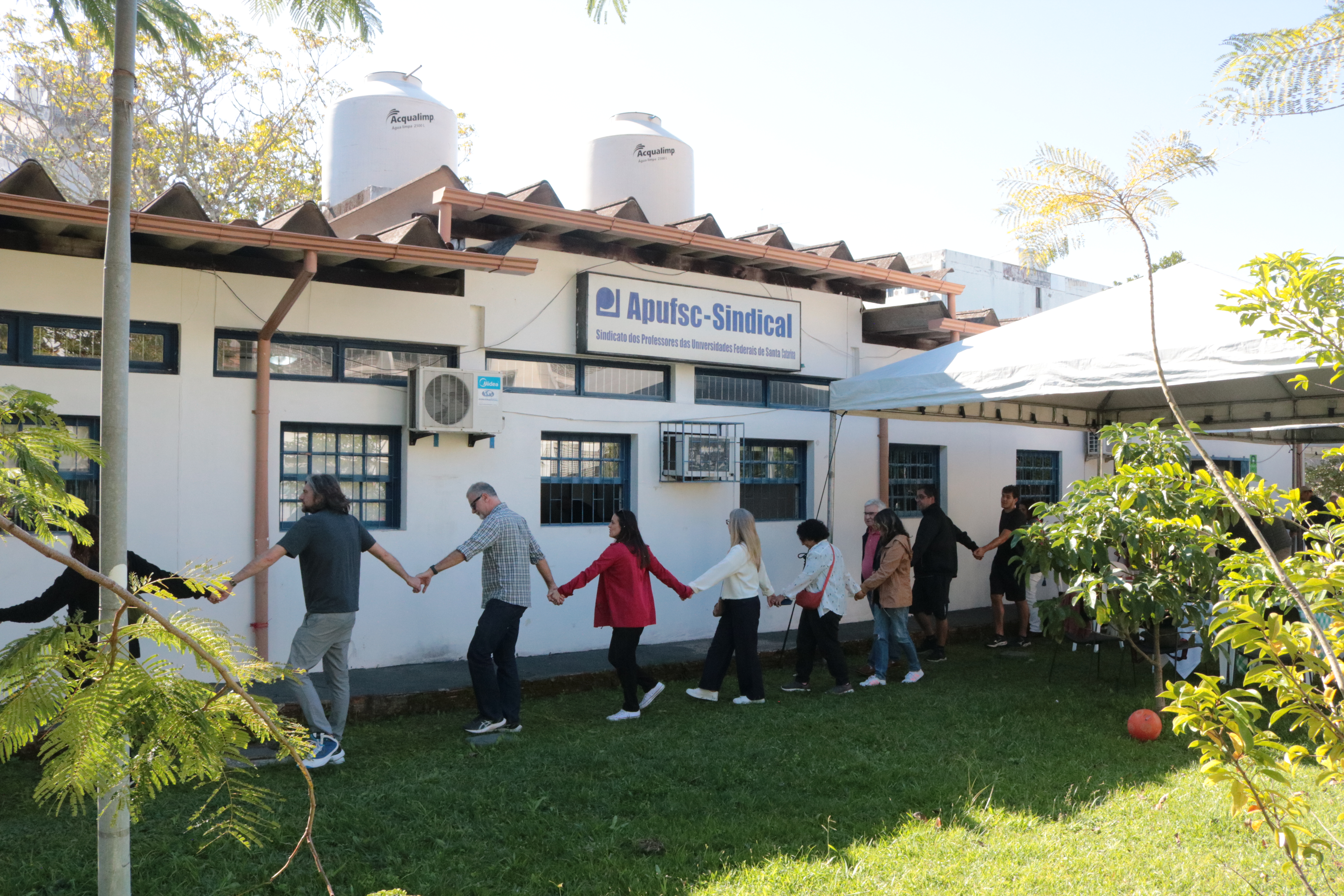 No Boteco Especial realizado neste sábado, dia 31, na sede da Apufsc no campus da Universidade Federal de Santa Catarina (UFSC) na Trindade, em Florianópolis, houve confraternização da categoria, que deu abraço simbólico na edificação, que deve ser demolida. Houve comida de boteco e música do grupo Choro Mulheril.