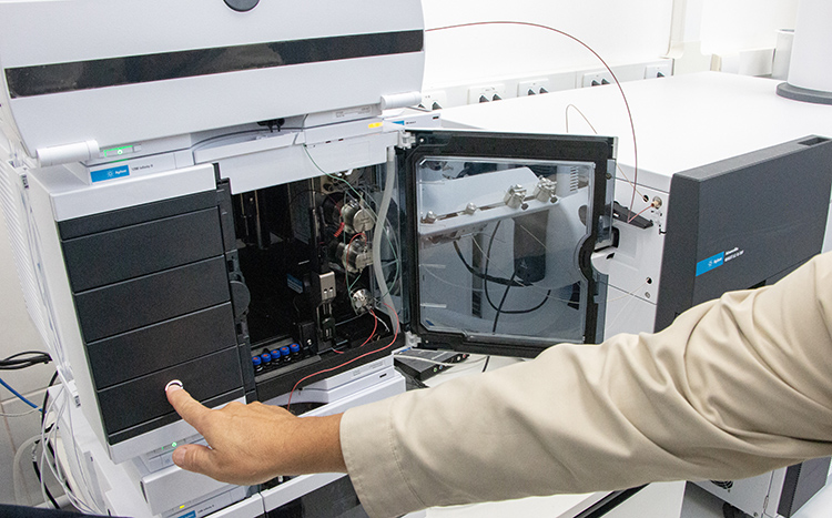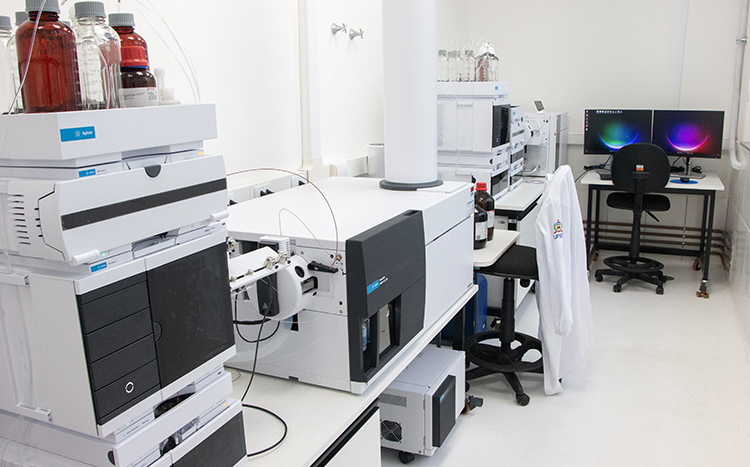 São quatro novos equipamentos de Cromatografia Líquida (LC) que funcionarão juntos para identificar e medir a quantidade de componentes em diferentes tipos de amostras, como na bile de peixes. Esses materiais podem fornecer detalhes sobre os efeitos do óleo nas espécies a partir de quantidades muito pequenas. Na Sala de Espectrometria de Massas, um dos equipamentos, o LC-TOF (time of flight, tempo de voo em português), lança as moléculas em um tubo vertical e, com as informações de tempo de voo, gera um espectro que indica quais são as substâncias presentes.