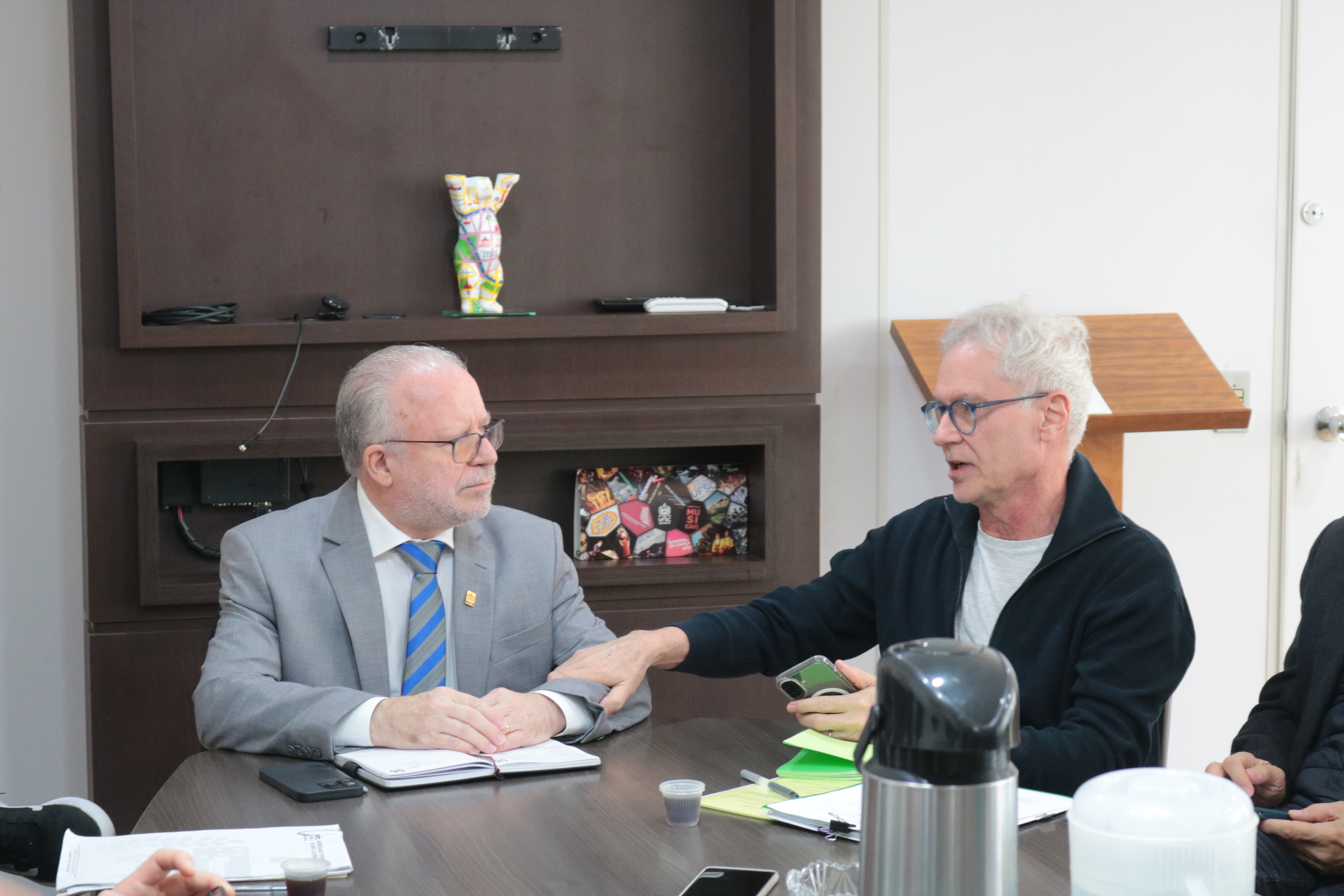 Na reunião desta sexta, o presidente da Apufsc, Bebeto Marques, apresentou ao reitor Irineu Manoel de Souza e outros representantes da Administração Central os resultados da consulta de opinião, que orienta agora as negociações da Diretoria junto à categoria. “Cá estamos na expectativa de construir uma posição final em assembleia de um local definitivo para a Apufsc. Essa será uma decisão da assembleia que será convocada em breve, conforme o estatuto. Temos o máximo interesse em resolver isso logo. É com esse espírito que estamos aqui”, disse Bebeto Marques.