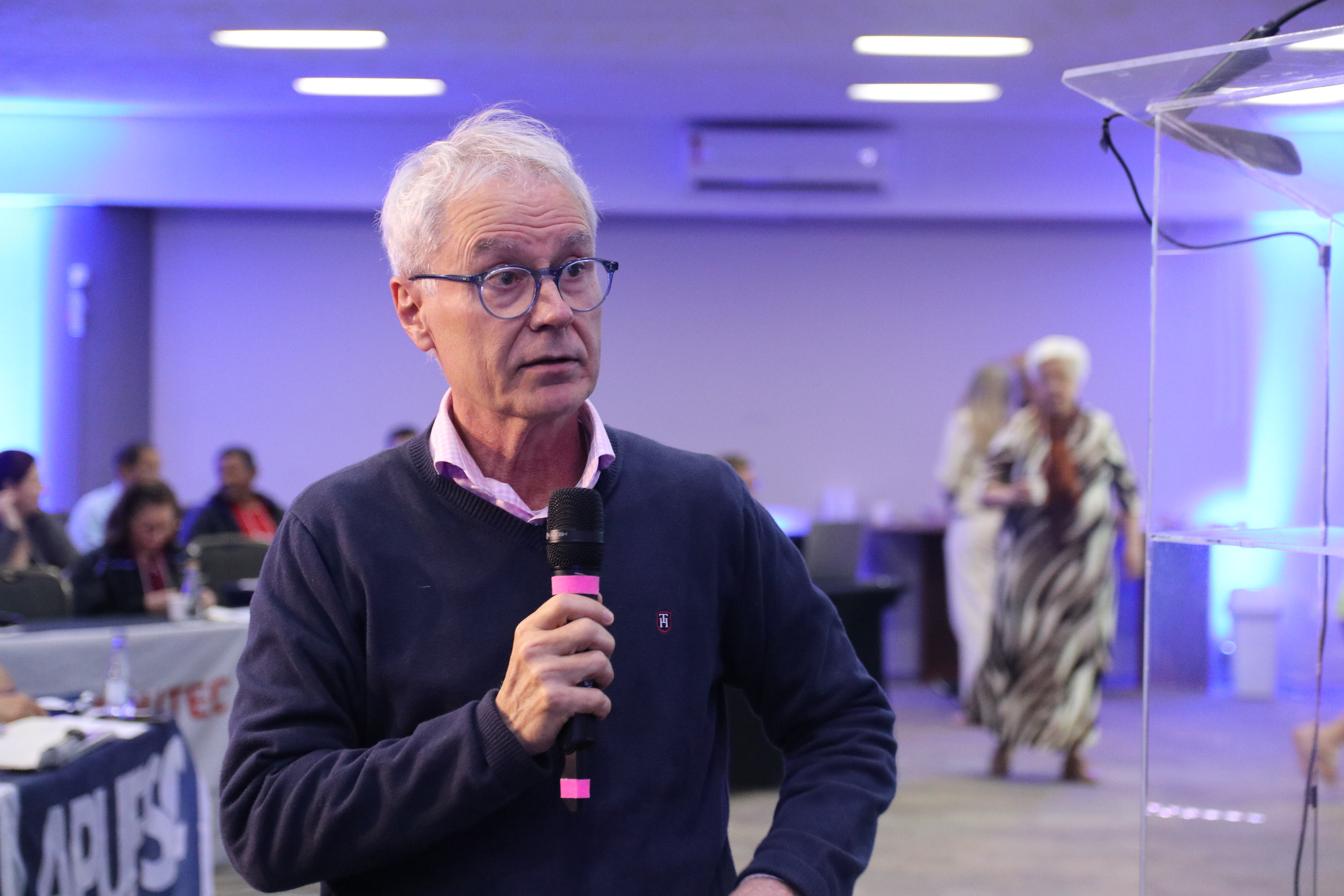 Ênio Pontes apresentou o texto que se refere à proposta a ser incluída no documento final do Encontro e abriu espaço para intervenções dos delegados e das delegadas presentes. Ele destacou que “as contribuições apresentadas auxiliam no avanço não só da Ciência e Tecnologia, mas também do movimento sindical docente”.