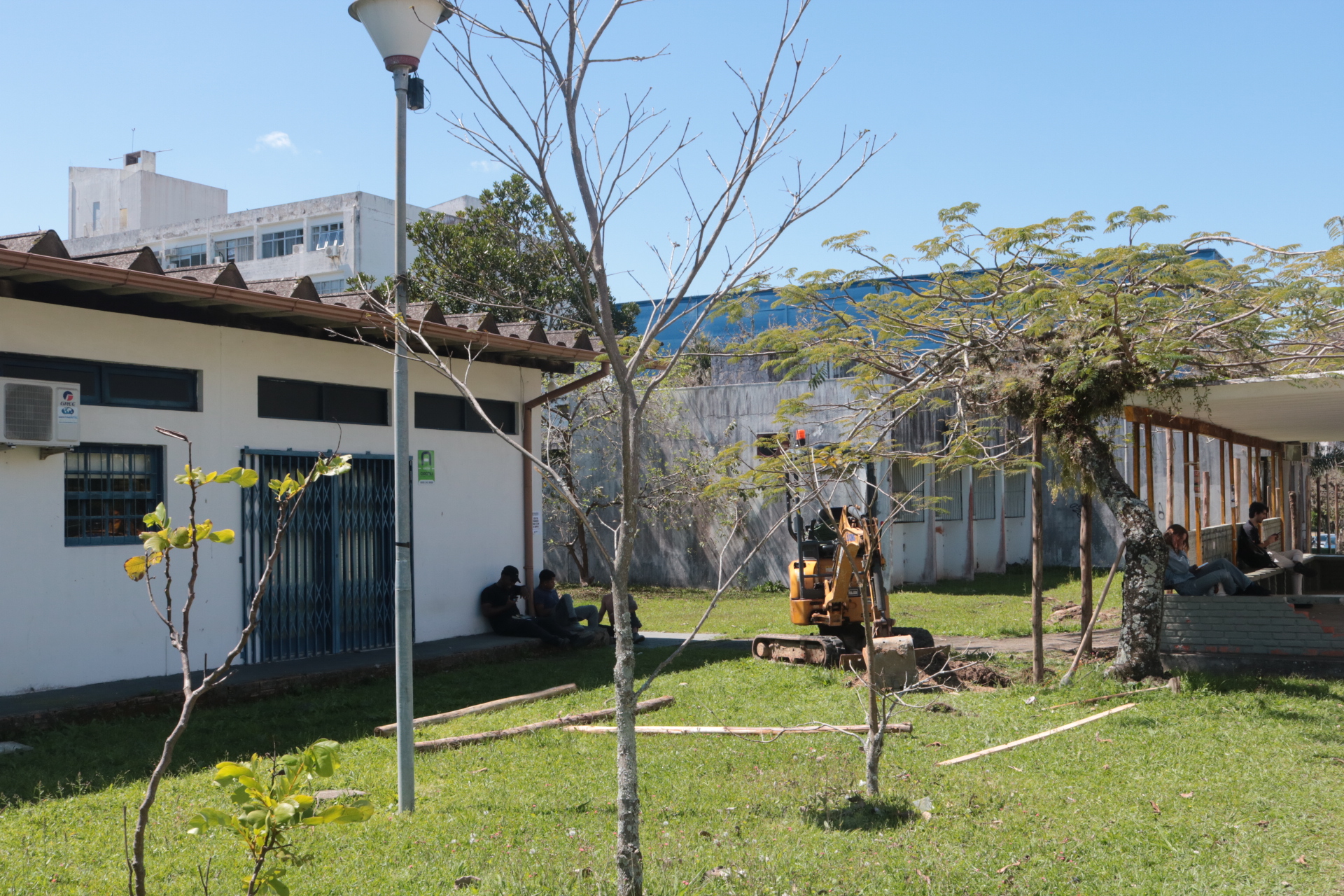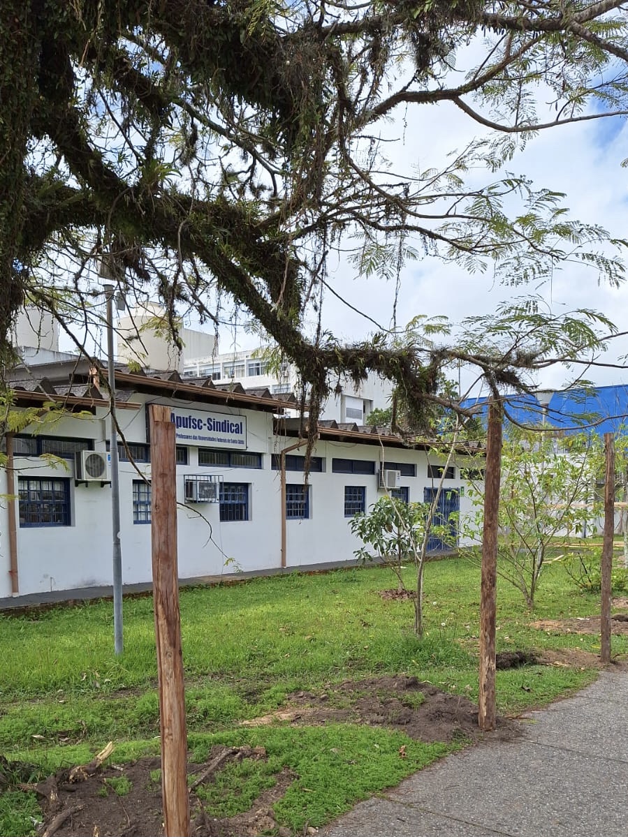 Após essa solicitação e a divulgação do ofício no site da Apufsc, recebemos a visita do prefeito do campus para esclarecimentos e buscar resolver o problema do tapume. Discutidas algumas alternativas, chegou-se ao entendimento de que a sede ficaria com acesso irrestrito, e o tapume iria apenas circundar o edifício. Também nos deslocamos até o terreno Flor do Campus, para avaliarmos alternativas melhores para acesso à luz, água e esgoto, considerando que as sugestões apontadas pela Prefeitura Universitária (PU) são de difícil execução (como o corte de árvores, por exemplo).