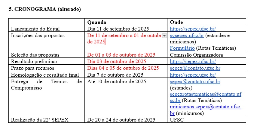 Com isso, foram alterados também alguns eventos do cronograma: a divulgação do resultado preliminar de seleção das propostas será em 3 de outubro e o período para apresentação de recursos será em 4 e 5 de outubro. A publicação do resultado final permanece programada para 7 de outubro.