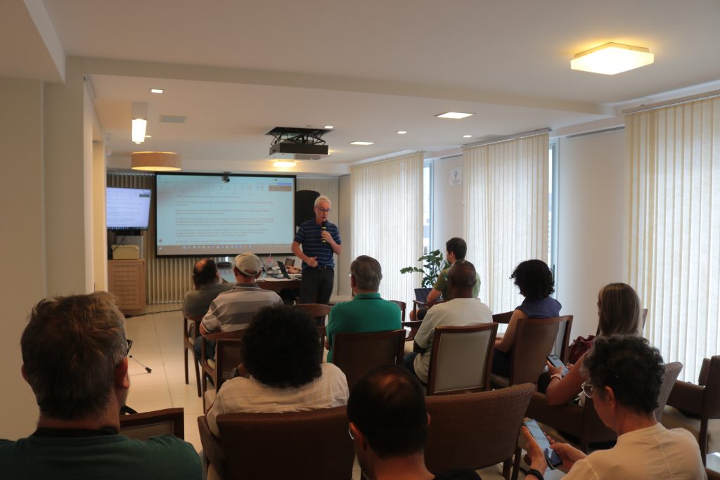 O professor Bebeto Marques apresentou a cronologia dos fatos relacionados à Comeleufsc ao CR (Foto: Stefani Ceolla/Apufsc)
