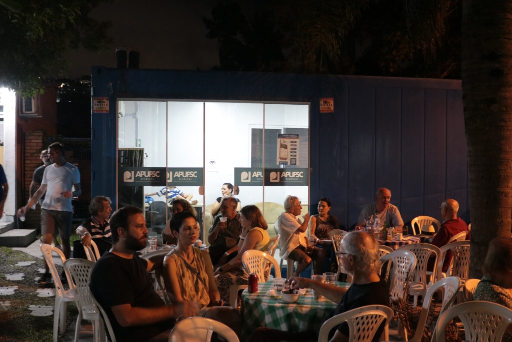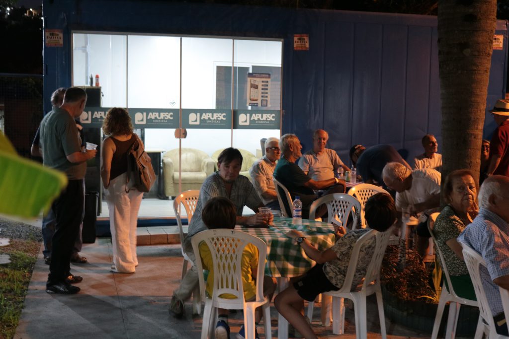 Centenas de docentes e acompanhantes participaram do Boteco Especial de Volta às Aulas, realizado na sede da Apufsc-Sindical no campus da Universidade Federal de Santa Catarina (UFSC), em Florianópolis, na noite de sexta-feira, dia 27. O evento teve confraternização, música e lançamento de livros.