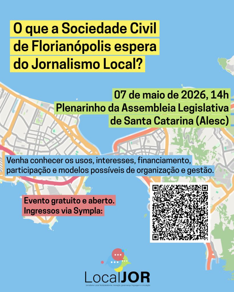 Será realizado no dia 7 de maio, no Plenarinho da Assembleia Legislativa de Santa Catarina (Alesc), o seminário “O que a sociedade civil de Florianópolis espera do jornalismo local”. O evento é uma iniciativa do Grupo de Pesquisa LocalJor, vinculado ao Programa de Pós-Graduação em Jornalismo (PPGJor), da Universidade Federal de Santa Catarina (UFSC).