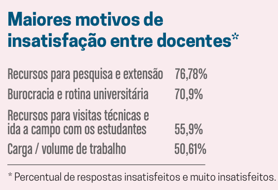 Não é à toa que o excesso de burocracia aparece como uma das maiores insatisfações dos professores e professoras da universidade. Na pesquisa encomendada pela Apufsc para traçar o perfil da docência da UFSC, 71% dos entrevistados se mostraram insatisfeitos com a burocracia, atrás apenas dos 76% que reclamaram da falta de recursos para pesquisa e extensão. A crítica está no tempo perdido com tarefas administrativas, como o preenchimento de formulários, pesquisas de preços, prestação de contas, que tiram dos docentes o tempo que deveria ser dedicado à ciência e à sala de aula. Uma estimativa feita pelo Conselho Nacional das Fundações de Apoio às Instituições de Ensino Superior e Institutos de Pesquisa (Confies), em 2017, aponta que os pesquisadores brasileiros gastam um terço de seu tempo resolvendo questões burocráticas – mas a sensação é de que é muito mais que isso.