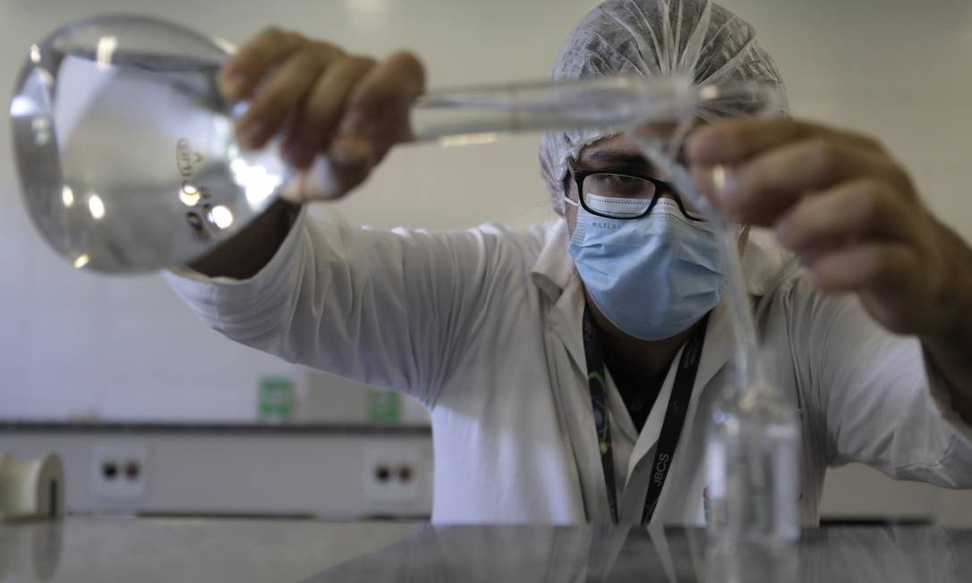Fabricação de álcool em gel e líquido por profissionais do (IFRJ), em Realengo Foto: Luiza Moraes / O Globo